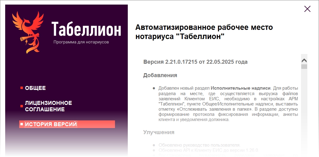 Выпущено обновление АРМ "Табеллион" (версия 2.21.0.17215), в которое вошли следующие изменения: